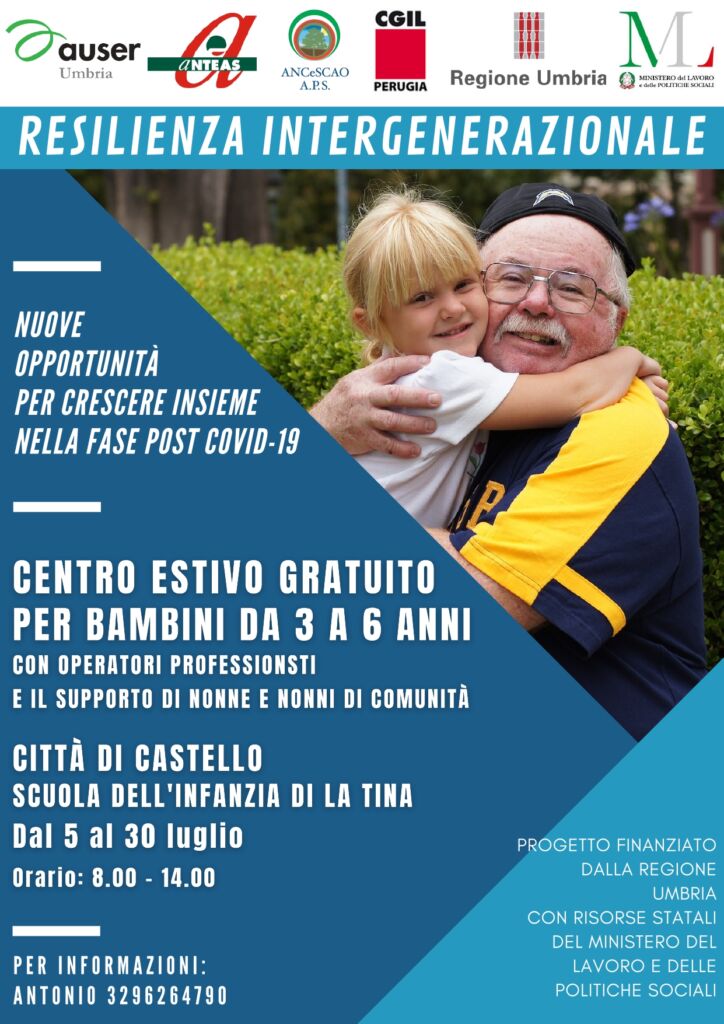 Un centro estivo gratuito per bambine e bambini da 3 a 6 anni, con operatrici professionali e il supporto di “nonne e nonni di comunità”: è partito anche a Città di Castello il progetto “Resilienza intergenerazionale: nuove opportunità per crescere insieme nella fase post Covid-19”, promosso da Auser, Ancescao, Anteas dell’Umbria insieme a Regione e Ministero delle politiche sociali e che punta a rafforzare la resilienza delle famiglie più vulnerabili nella fase post-COVID attraverso la pratica intergenerazionale che mette in comunicazione e in stretta collaborazione bambini e persone anziane.