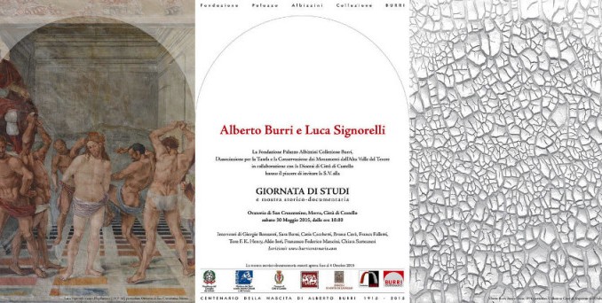 Per l’occasione due opere di Alberto Burri sono messe a diretto raffronto con le opere di Luca Signorelli. A conclusione dei lavori viene offerto un concerto eseguito dall’ensemble Suono Giallo. Gli atti integrali della Giornata di studi saranno pubblicati congiuntamente alla documentazione esposta e presentati nell’autunno 2015.