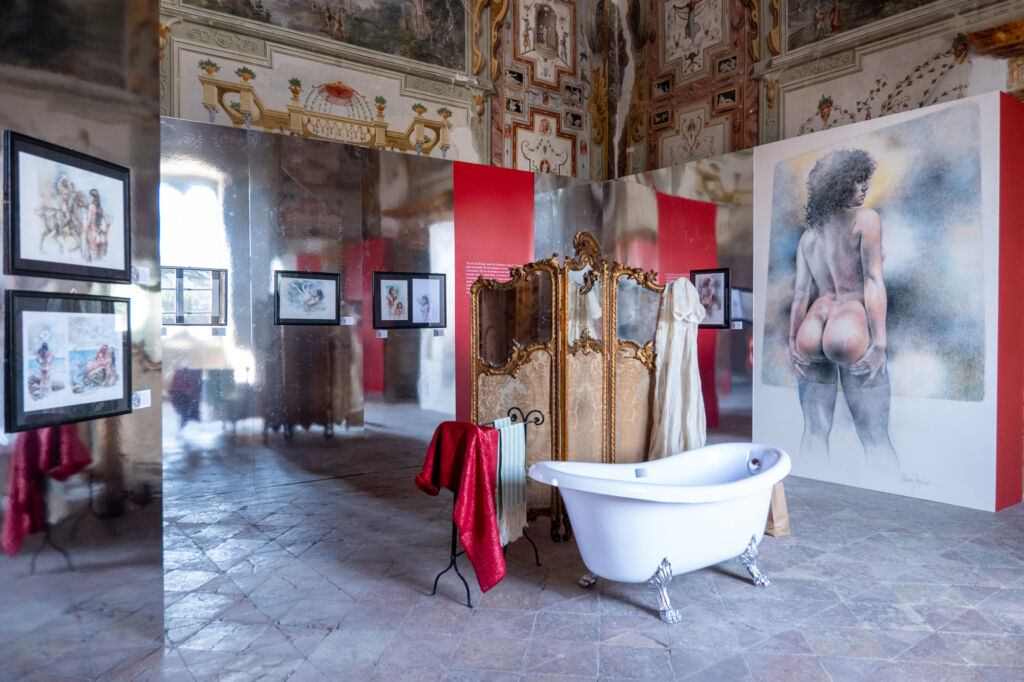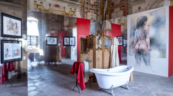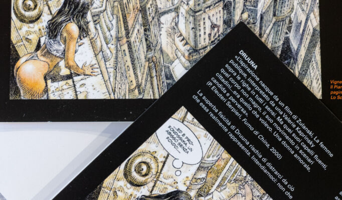 Una mostra che è quasi una collettiva, dunque: circa 300 opere, molte delle quali dei 64 autori che ripercorrono la storia del fumetto italiano e si mettono in rapporto con la mano di Serpieri nelle tre grandi tematiche che animano l’esposizione: Western, Eros e Fantascienza. “La mostra si apre con due sale dedicate alla grande frontiera americana, che ha da sempre affascinato i lettori italiani. – spiega Giulio Pasqui, co-coordinatore artistico della mostra – Una dedicata all’ambito Biblico, dove le illustrazioni di Serpieri sono messe in rapporto con il maestro Toppi: la sovrumanità ricercata da quest’ultimo contrapposta al realismo umano di Serpieri. Il tema più ricco, naturalmente, è quello della fantascienza: tre sale sono dedicate a Druuna e tutti gli altri autori della tematica. Le ultime sale saranno dedicate all’eros in un dialogo tra Serpieri e gli altri autori: la bellezza prorompente di Druuna si rapporta con le figure androgine di Crepax e le minute ragazzine di Giardini. Non poteva mancare, infine, una sala dedicata esclusivamente all’erotico… ovviamente vietata ai minori, della quale non sveliamo nulla!”
