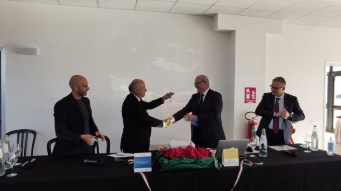 “Una bella giornata quella di oggi che vede la partenza della gestione della Piastra Logistica dell’Alto Tevere”. E’ quanto ha affermato l’assessore regionale alle infrastrutture, Enrico Melasecche, in occasione della consegna “delle chiavi” della gestione dell’infrastruttura logistica che si è svolta questa mattina nell’area di insediamento, individuata dalle Amministrazioni comunali di Città di Castello e San Giustino, al margine della zona industriale di Città di Castello e ad essa collegata direttamente con una nuova viabilità.