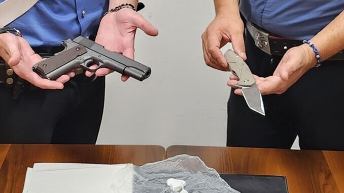 Pistola – I Carabinieri del Nucleo Operativo e Radiomobile della Compagnia di Città di Castello hanno arrestato un 33enne albanese con l’accusa di spaccio di sostanze stupefacenti e porto abusivo di arma bianca. L’uomo è stato fermato nei pressi del centro storico durante un controllo alla guida della sua autovettura.