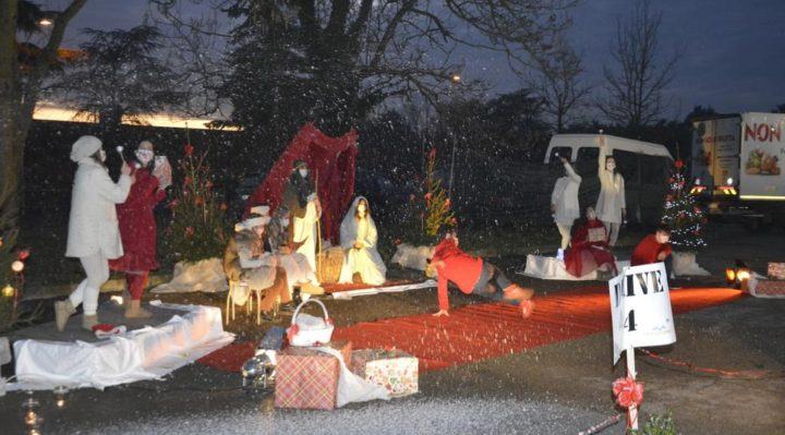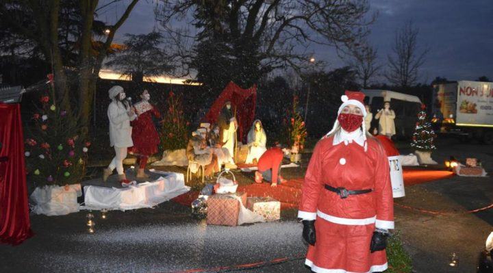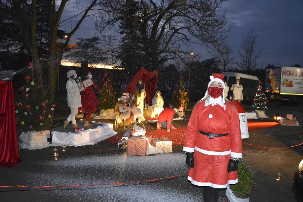 Il tutto dura cinque minuti con quattro auto per volta che entrano. Fra il miracolo della neve artificiale che scende, le note delle canzoni e brani cult di natale, lo spettacolo pirotecnico, la danza all’uscita puntuale e festante Babbo Natale consegna i doni in tutta sicurezza dal finistreno delle auto. Un successo annunciato ed apprezzato dai genitori che hanno potuto regalare ai propri figli momenti unici di un Natale marchiato “Covid” ma pur sempre Natale.