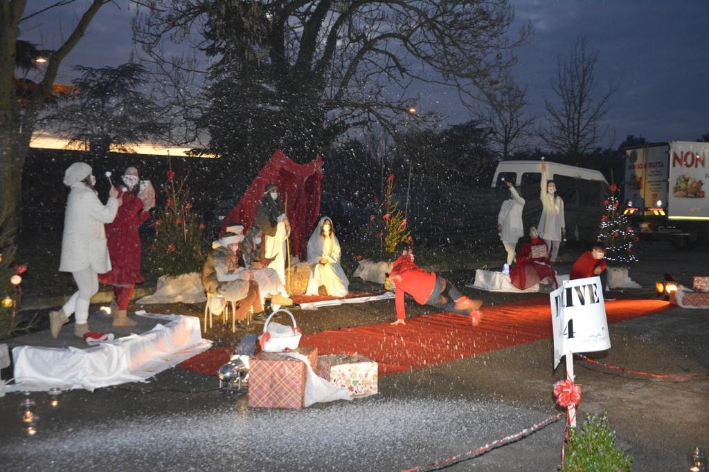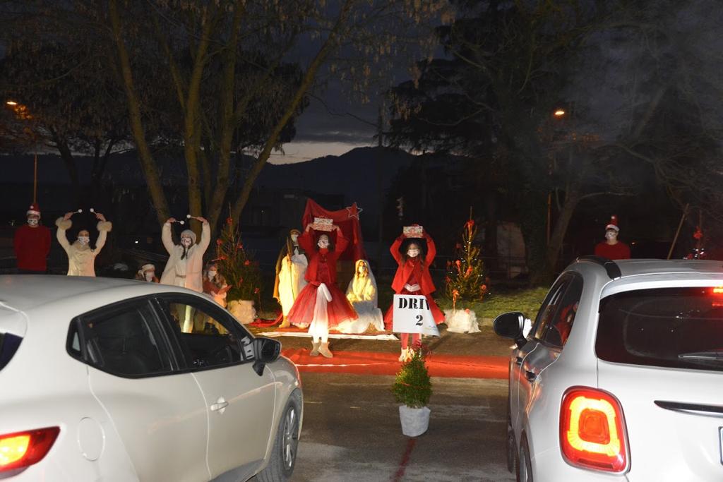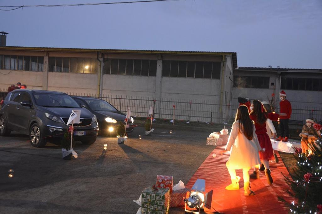 Come in un “drive in” cinematografico ognuno è rimasto in tutta sicurezza nella propria autovettura. All’ingresso un folletto consegna un numero di telefono e di li a poco la voce di un Elfo racconta una storia natalizia che ti accompagna durante il percorso all’interno dell’ampio piazzale antistante la scuola di ballo.