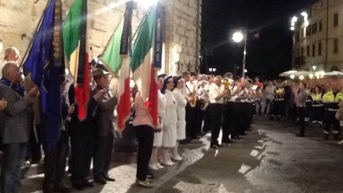 Il momento del posizionamento è particolarmente d’impatto perché gli uomini dei Vigili del fuoco si calano sulla torre, quest’anno valo-rizzata dal nuovo sistema di illuminazione architettonico in grado di colorarne in tema, ieri di verde, bianco e rosso, i tre lati che si sporgono sulla piazza. Introdotta dalla Fi-larmonica G. Puccini, diretta dal maestro Francesco Marconi, la manifestazione si è aperta con l’intervento del sindaco e del presidente del Rotary Claudio Tomassucci. La discesa del drappo è stata accompagnata dall’Inno all’Europa e dall’Inno di Mameli, poi lo spettacolo pirotecnico sullo sfondo dei Giardini del Cassero e il brindisi benaugurale. Anche quest’anno a salutare la Repubblica, oltre a tanti cittadini, le forze dell’ordine, le associazioni combattentistiche e di protezione civile.