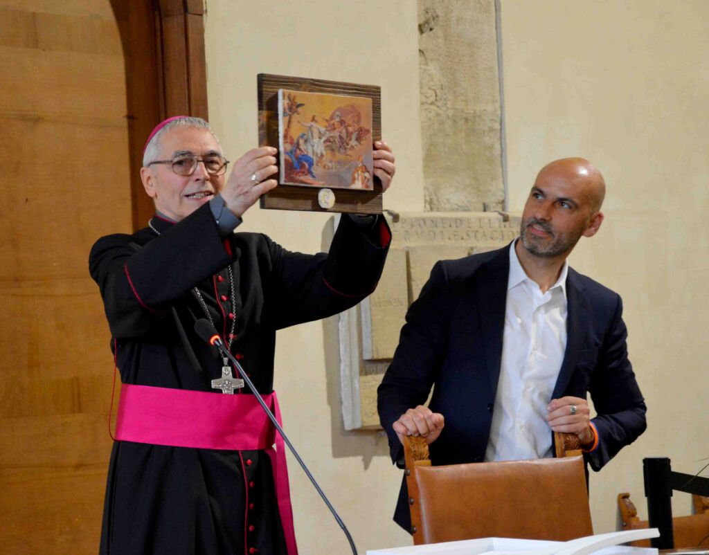 Ricordo l’accoglienza dell’allora sindaco Fernanda Cecchini. Da allora – ha detto Monsignor Cancian, in apertura del suo intervento – mi sono sentito cittadino tifernate a tutti gli effetti. Col sindaco Luciano Bacchetta ed ora con Luca Secondi abbiamo condiviso le gioie e le sofferenze della città, le feste, i lutti, la pandemia, tanti momenti ufficiali e innumerevoli incontri personali. Era prassi scambiarci qui gli auguri di Natale e Pasqua, ritrovarci per San Florido,  per qualche manifestazione anche religiosa in piazza, per la processione del venerdì Santo, del Corpus Domini. Dalla mia finestra ho ammirato ogni giorno i due palazzi, quello del comune e quello del vescovado, che insieme alla cattedrale, delimitano piazza Gabriotti (piazza di sotto).