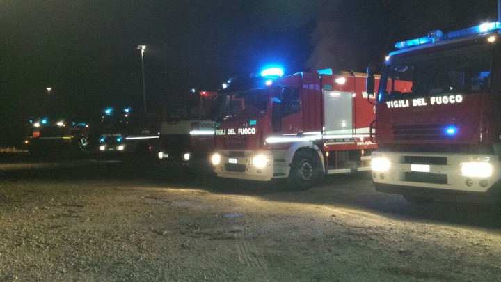 Il legname interessato dal fuoco era accatastato in bancali e l’area era di vaste proporzioni.