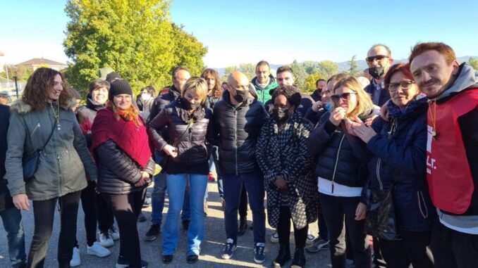 A fronte della totale indisponibilità al confronto da parte aziendale, i lavoratori e i loro sindacati, Slc Cgil e Fistel Cisl, hanno deciso di scioperare. Uno sciopero di 16 ore, iniziato lunedì, che ha visto un’adesione totale dei dipendenti. La protesta è stata inoltre resa visibile con un presidio davanti ai cancelli, al quale oggi è intervenuto anche il neoeletto sindaco di Città di Castello, Luca Secondi, che ha portato la propria solidarietà e quella della sottosegretaria allo Sviluppo Economico, Anna Ascani, raggiunta telefonicamente.
