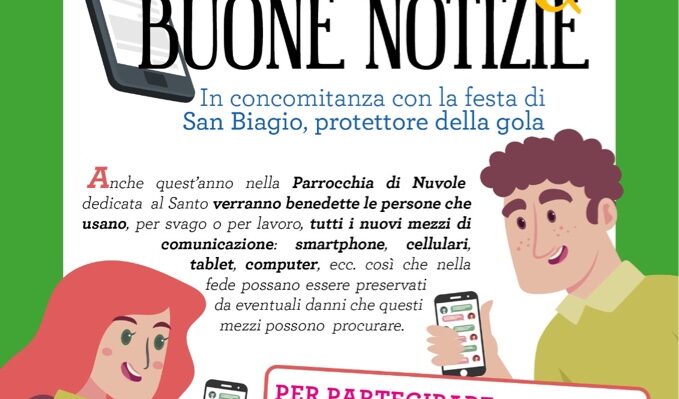 . L’annuncio è stato postato direttamente dal parroco “hi-tech” sul profilo facebook dove verrà trasmessa la santa messa e la benedizione, https://www.facebook.com/Parrocchia-di-nuvole-443566649036674 con tanto di significative considerazioni. “Cari amici – scrive Don Giorgio – ripartiamo anche quest’anno 2022 con le varie feste parrocchiali. La prima che incontriamo nel calendario è la festa di san Biagio, a Nuvole. Conosciamo il santo medico e martire dell’Anatolia, vissuto tra il terzo e quarto secolo. Era Vescovo di Sebaste.