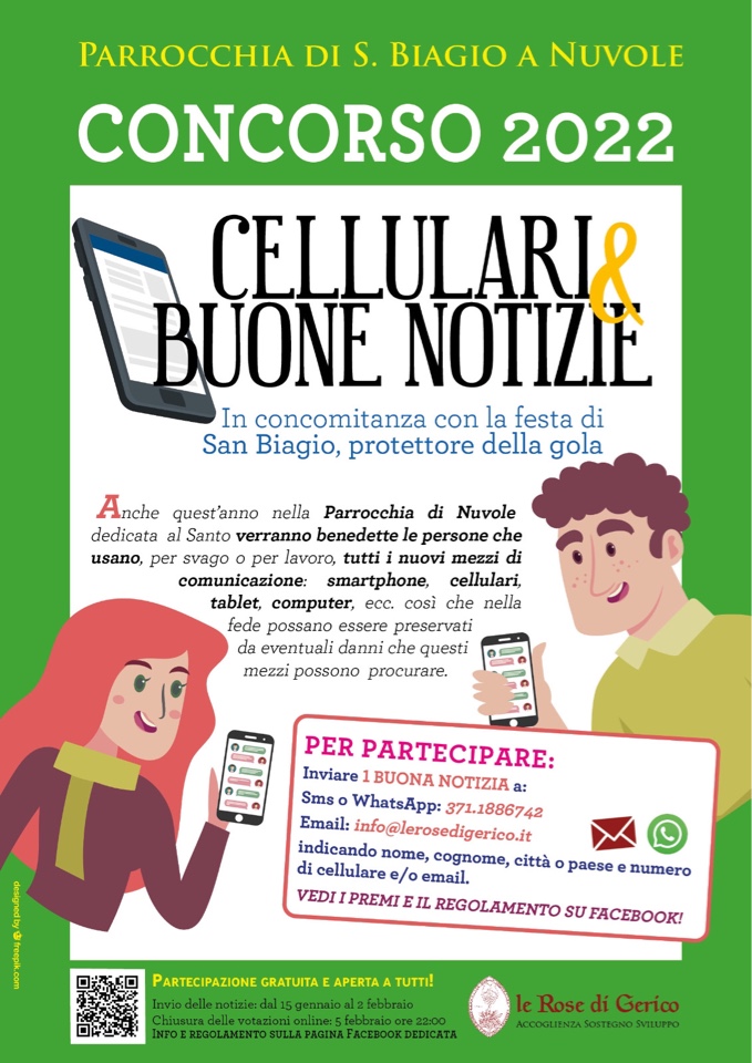 Quante falsità oggi “soffocano” i nostri fratelli! Le parole negative, i giudizi maligni, i falsi messaggi, i finti perdoni, la pace proclamata, ma non perseguita e pagata di persona, creano disagio, portano turbamento, scavano divisioni, offendono Dio e gli altri. In questa situazione di confusione in cui siamo immersi e forse feriti, chiediamo l‘intercessione di san Biagio perché il Signore ci guarisca da questi possibili danni e ci preservi da tutti i mali, del corpo e dello spirito, in maniera da portare nel mondo il solo messaggio che vale, quello della pace.” Riparte con questa festa anche il concorso “Cellulari e Buone Notizie”.