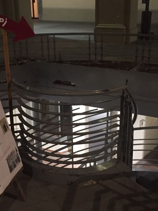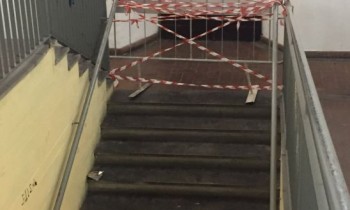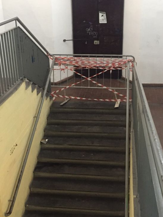 Muri interni imbrattati da escrementi di piccione, ragnatele, bagni pubblici inagibili e in completo abbandono