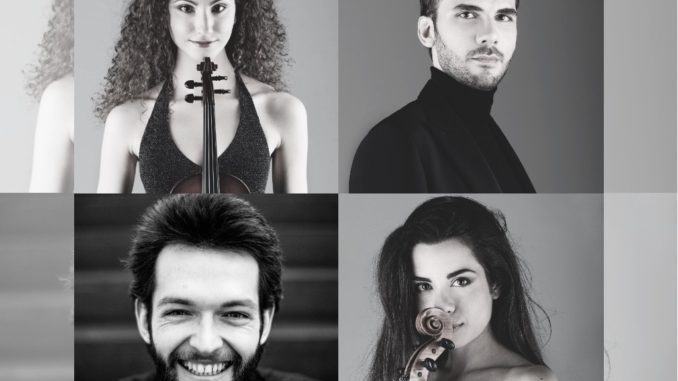 C’è grande attesa per il ritorno a Città di Castello del Quartetto Werther, il gruppo vincitore del Concorso nazionale Alberto Burri 2019. Per il secondo anno consecutivo, la formazione vincitrice del concorso tifernate si è aggiudicata anche il prestigioso Premio Piero Farulli nell’ambito del Premio della critica musicale Franco Abbiati e come da tradizione tornerà a esibirsi nella cittadina umbra nell’ambito del cartellone principale del Festival delle Nazioni. Nel concerto in programma martedì 25 agosto 2020 alle ore 20.00 nel cortile del Castello Bufalini di San Giustino, la formazione composta da Misia Iannoni Sebastianini al violino, Martina Santarone alla viola, Vladimir Bogdanović al violoncello e Mario Montore al pianoforte eseguirà in particolare il Quartetto in la minore (dal Quartettsatz di Gustav Mahler) di Alfred Garryevich Schnittke, il Quartettsatz in la minore di Gustav Mahler e il Quartetto per pianoforte e archi in do minore op. 60 n. 3 – denominato Werther – di Johannes Brahms.