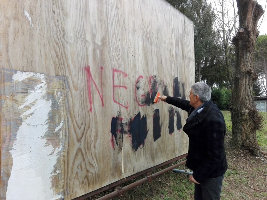 CITTA’ DI CASTELLO – Franco Ciliberti e Luciano Tavernelli rispettivamente membro della direzione regionale e consigliere comunale del PD, cancellano scritte infamanti. Da troppo tempo anche a Città di Castello si vedono scritte infamanti razziste che evocano un periodo nel quale il confronto dialettico viene sostituito da slogan che già nella storia hanno creato drammi epocali. Dobbiamo reagire, perché l’indifferenza o la superficialità sono l’anticamera pericolosa di rigurgiti, fascisti, nazisti e razzisti.