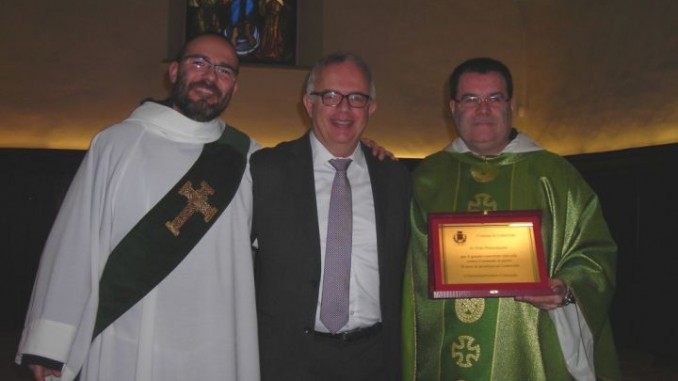 Il sindaco Marco Locchi ha consegnato ieri mattina una targa ai Frati Francescani della Chiesa Santa Maria della Pietà, in occasione del cinquantesimo anniversario del loro ritorno ad Umbertide. A seguito della soppressione di tutti gli ordini religiosi, nel 1864 i frati lasciarono Umbertide per farvi ritorno soltanto un secolo dopo, nel 1964; da allora si sono sempre adoperati attivamente per la comunità, diventando un punto di riferimento per la vita non solo religiosa, ma anche sociale e culturale, di Umbertide. Così ieri, al termine della santa messa che ha chiuso formalmente i festeggiamenti per il cinquantenario, il sindaco Locchi, a nome dell’Amministrazione Comunale, ha consegnato a padre Francesco Bergomi una targa per ringraziare i frati francescani del grande contributo dato alla comunità in questi cinquant’anni di presenza ad Umbertide.