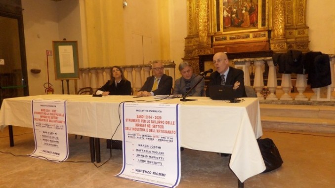 Si è tenuta ieri pomeriggio presso il Museo Santa Croce l’iniziativa “Bandi 2014-2020. Strumenti per lo sviluppo delle imprese nei settori dell’industria e dell’artigianato”, promossa dall’Amministrazione Comunale di Umbertide in collaborazione con la Regione dell’Umbria. Di fronte ad una gremita platea il dott. Luigi Rossetti, coordinatore dell’ambito Imprese e Lavoro della Regione, ha illustrato le nuove opportunità che, grazie alla programmazione economica europea 2014-2020, la Regione sarà in grado di offrire alle imprese che vogliono continuare ad investire e a cavalcare l’onda lunga della crisi. All’iniziativa, a cui hanno partecipato imprese, associazioni di categoria, studi tecnici, commercialisti ed istituti di credito, sono inoltre intervenuti il sindaco Marco Locchi, l’assessore allo Sviluppo economico Raffaela Violini e il consigliere regionale Manlio Mariotti, membro della commissione consiliare Attività economiche.
