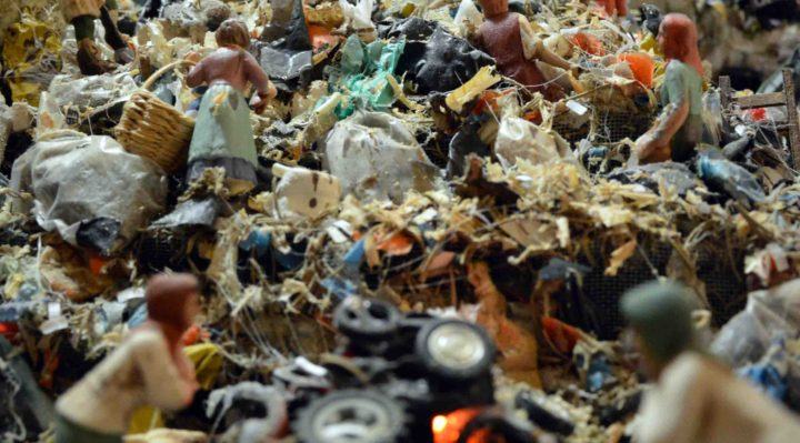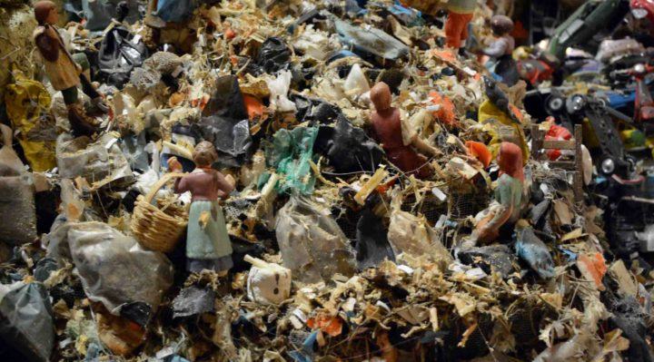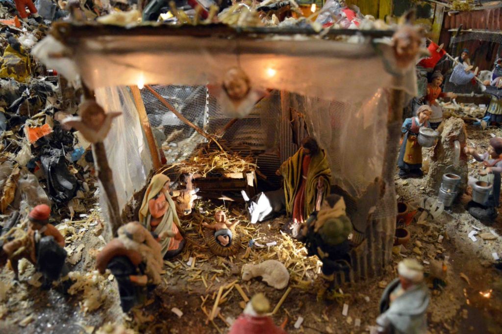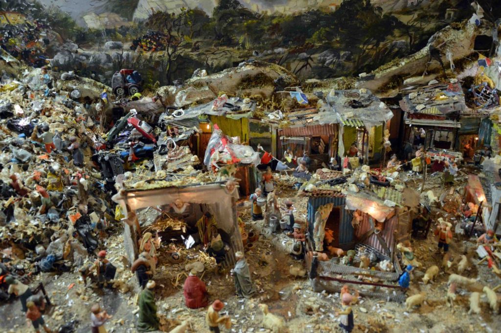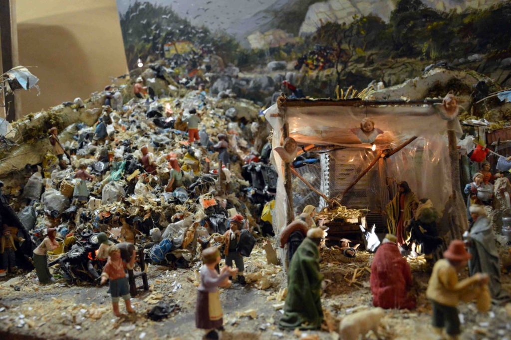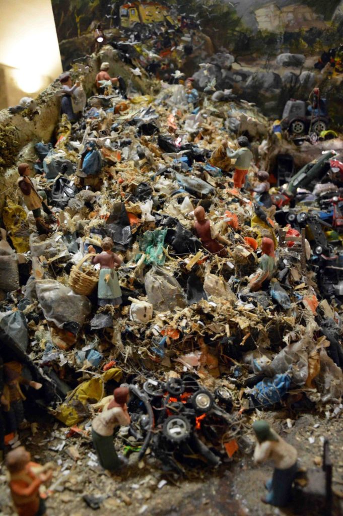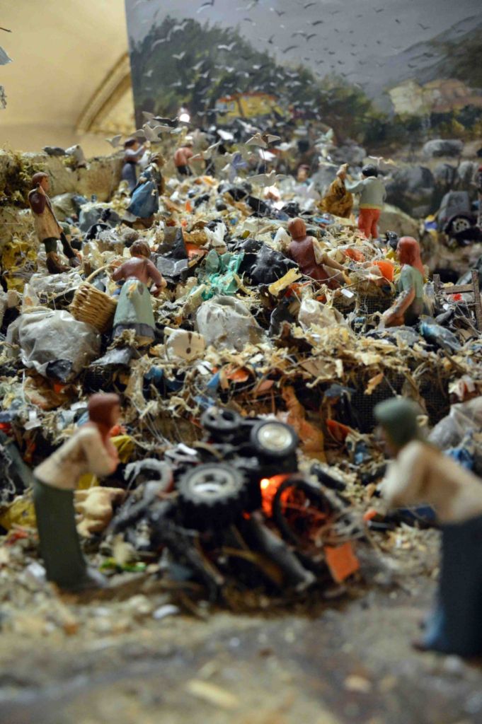 “Generosità in discarica”, questo il titolo eloquente dell’opera unica di questo genere, è un presepe che sorge accanto a rifiuti, vecchie auto, ferro arrugginito che ripropone temi di forte impatto sociale come la salvaguardia dell’ambiente, il degrado delle periferie cittadine, gli ultimi, i senzatetto con un messaggio di speranza per chi crede e non solo. “In una cava dismessa, alcune famiglie di poveri disperati trovano rifugio in una baraccopoli. Nella stessa cava, proprio adiacente alle baracche, c’è una discarica a cielo aperto, dove ogni mattina le stesse famiglie cercano qualcosa da mangiare. Eppure, in questo posto infernale, a Natale questi poveracci non dimenticano di allestire “Il Presepe” , e un bambino affamato riesce persino a provare pietà per un povero gattino ferito e infreddolito.