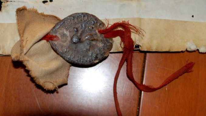 Ottocento anni dopo il 1216 (anno della sottomissione a Perugia), a Montone una mostra al Museo civico di San Francesco ricorda questo storico momento. Evento nell’evento, si è scelto di inaugurare domenica 14 agosto, data di inizio dei festeggiamenti per la “Donazione della Santa Spina”, l’esposizione della pergamena che riporta le clausole del patto tra Perugia e Montone. Si tratta del più antico documento conservato nell’Archivio storico di Montone che tra l’altro conserva intatto il sigillo pendente, che raffigura un grifo. E anche in questo caso si tratta della più antica rappresentazione del grifo adoperato come simbolo del Comune di Perugia. La presentazione dell’edizione 2016 della “Donazione della Sanata Spina” e della collegata mostra (che rimarrà allestita fino al 31 dicembre) è avvenuta questa mattina in Provincia.