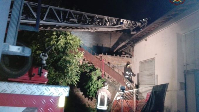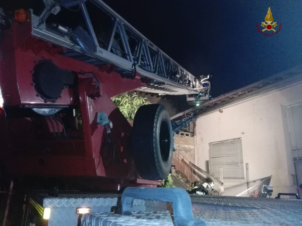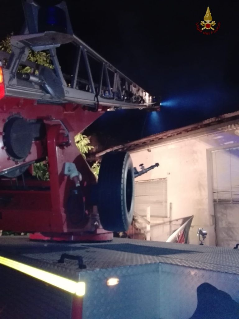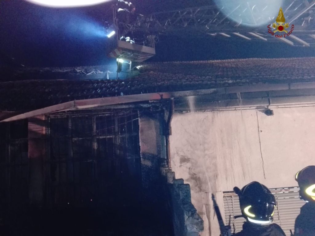 Sul posto cinque i mezzi dei vigili del fuoco impiegati, sul posto anche i carabinieri. Un vigile del fuoco durante le operazioni di spegnimento è rimasto ferito lievemente, colpito da una tegola a una spalla.