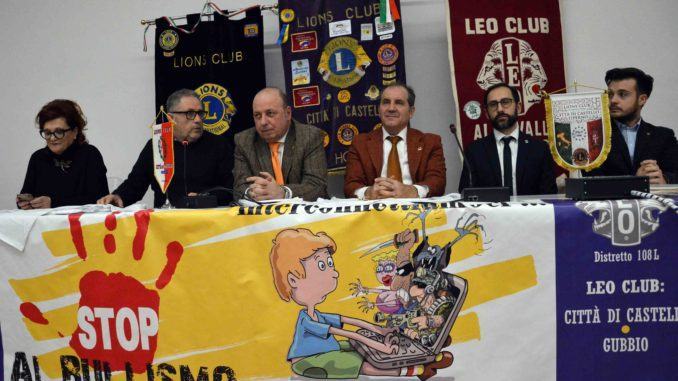 In occasione della giornata nazionale contro il bullismo e il cyberbullismo promossa il 7 febbraio dal Ministero dell’Istruzione, i Lions club dell’Alta Umbria chiamano il mondo dello sport a un’azione comune contro fenomeni sociali che hanno acquisito negli ultimi tempi una preoccupante diffusione tra i giovani. Per iniziativa del Lions Club Città di Castello Host, del Lions Club Tiferno e del Leo Club Città di Castello, dei Lions Club e del Leo Club di Gubbio, dei Lions Club di Umbertide e Montone, negli stadi, nei palazzetti e nelle palestre delle rispettive città saranno affissi striscioni con gli slogan “Stop al bullismo” e “Interconnettiamoci…ma con la testa”, che saranno stampati anche su magliette e su segnalibro destinati alle società utilizzatrici degli impianti sportivi allo scopo di promuovere la campagna tra i ragazzi e le loro famiglie, ma anche tra il pubblico di appassionati in occasione degli eventi nei quali saranno impegnate. Per dare un segnale forte di adesione al tema di studio nazionale 2019-2020 del Lions “Un calcio al bullismo” e al service nazionale 2019-2020 “Interconnettiamoci…ma con la testa”, deliberati dal congresso di Montecatini, i soci del comprensorio hanno messo in campo numeri imponenti, investendo in interclub tra i cinque Lions e i due Leo Club per realizzare 15 striscioni (tre per ogni club), 100 magliette (25 per ogni club) e 14.000 segnalibro.