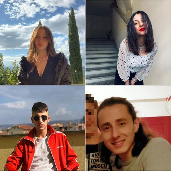 Le vittime della scorsa notte sono Luana Ballini, nata nel 2005, di Monte Santa Maria Tiberina, e Natasha Baldacci, Nico Dolfi e Gabriele Marghi, tutti nati nel 2000. Erano ragazzi solari, tranquilli, amanti della vita, ricorda chi li conosceva. La più piccola, Luana, era bravissima a scuola. Nico e Gabriele erano due sportivi, Natasha amava il mare.