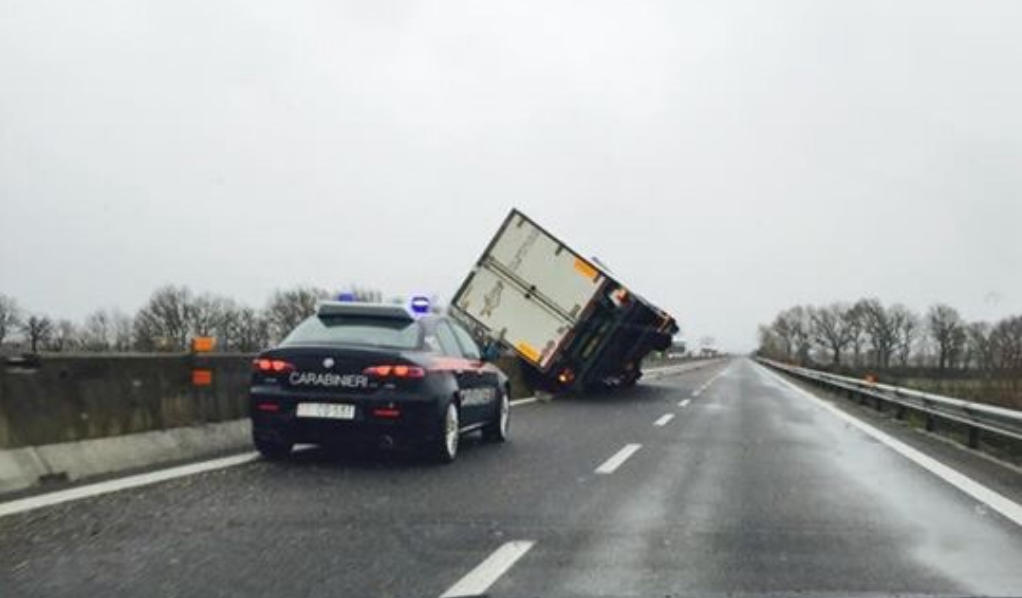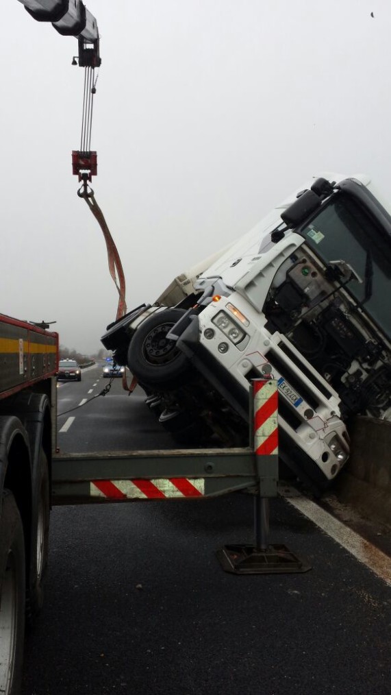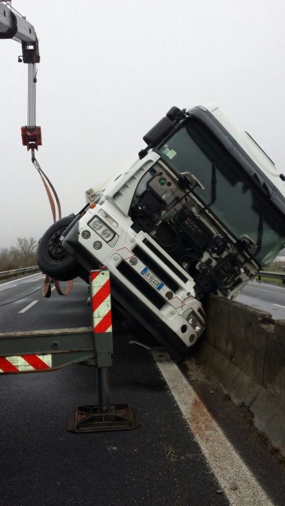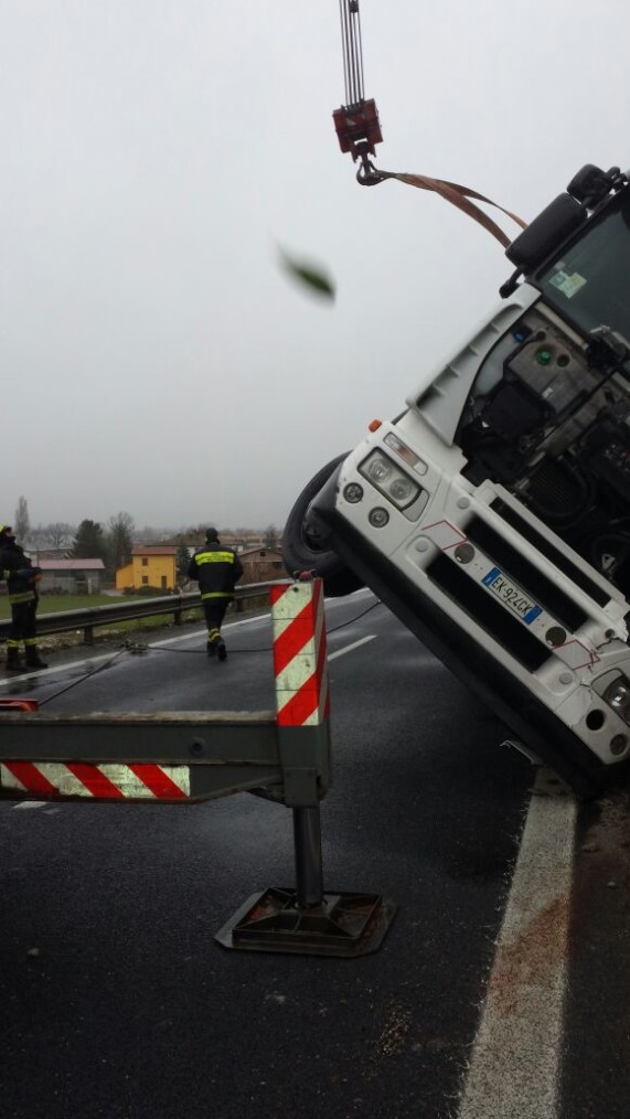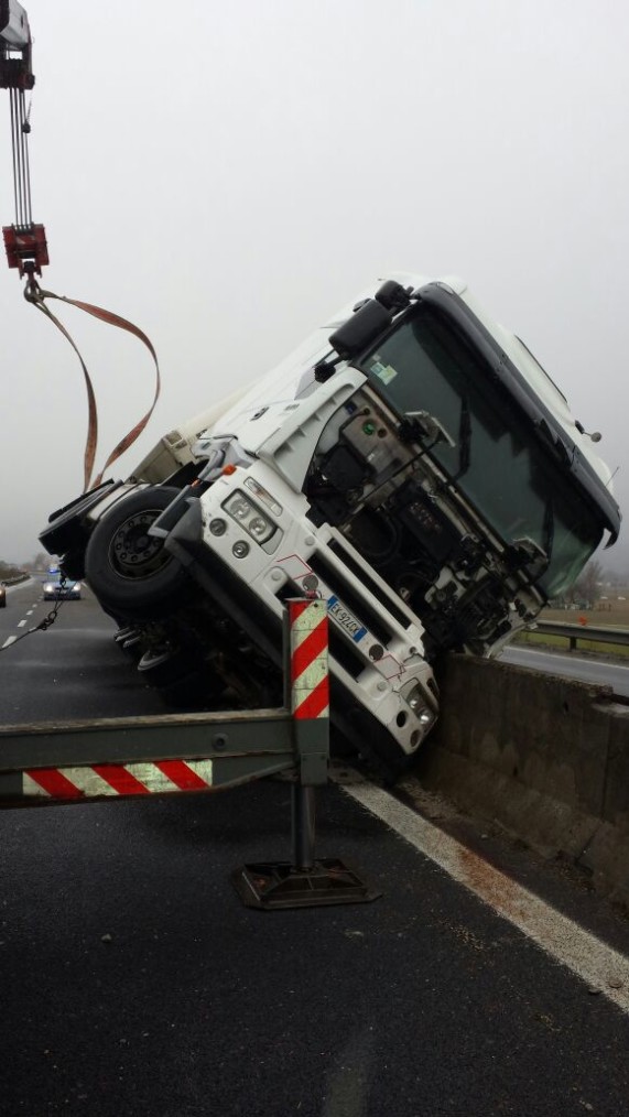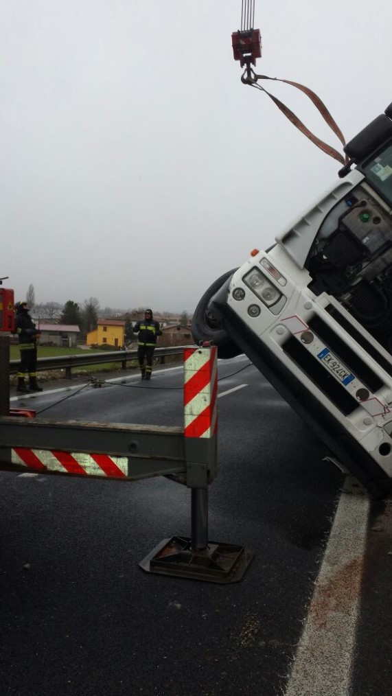 Lungo la ex E45 si è provveduto al recupero di due autocarri ribaltati su di un lato a causa del forte vento.