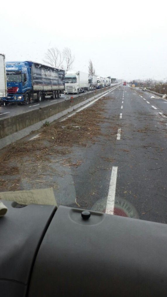 In Toscana, la strada statale 1 “Aurelia” è provvisoriamente chiusa in direzione nord ad Albinia, in provincia di Grosseto (km 149,500), e in località Lido di Camaiore (dal km 362,400 al km 363), in provincia di Lucca, a causa di alberi caduti sulla carreggiata per il forte vento.