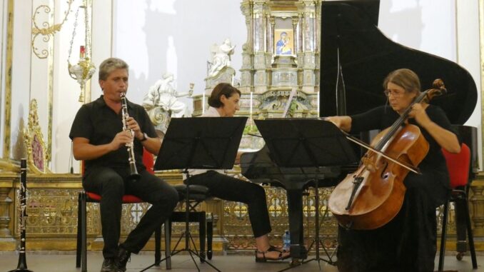 Alle ore 19:00, presso la Chiesa di San Gregorio, Collegiata di Santa Maria Assunta, sempre a Montone il concerto di musica classica dell’Eolian Trio. Con Carmelo Dell’Acqua al clarinetto, Francesca Taviani al violoncello e Laura Cozzolino al pianoforte, saranno eseguiti il Trio in mi b maggiore “Kegelstatt-Trio”, K 498 (1786) di Wolfgang Amadeus Mozart, il Trio op. 11 in si “Gassenhauer” (1797) di Ludwig Van Beethoven e il Trio in la minore op. 114 (1891) di Johannes Brahms. L’Eolian Trio è il risultato dell’incontro di tre musicisti di riconosciuta e raffinata esperienza e dal comune interesse dei tre interpreti per il repertorio cameristico. Laura Cozzolino, Francesca Taviani e Carmelo Dell’Acqua hanno perfezionato la propria formazione musicale presso prestigiose Accademie, fra le quali: Accademia Chigiana di Siena, Mozarteum di Salisburgo, Accademia di Imola, Scuola di Musica di Fiesole e con Maestri come il Trio di Trieste, Piero Farulli del Quartetto italiano, il Trio Ciaikowsky, Francesco Strano, Amedeo Baldovino, Richard Stoltzman, Rocco Filippini, Antony Pay, Pier Narciso Masi, Gervase De Peyer, Alfred Prinz, Bruno Canino, Andrew Marriner, Antonio Ballista. Hanno vinto numerosi premi in concorsi nazionali e internazionali: Giovan Battista Pergolesi di Napoli, Carlo Zecchi di Roma, Città di Barletta, Giovanni Battista Viotti di Vercelli, Festival Nazionale di Taranto, Antonio Scontrino di Trapani, Città di Grosseto, Città di Caltanissetta, Città di Pistoia, Vincenzo Scaramuzza di Crotone, Città di Acqui Terme, Wassily Kandinsky di Avellino. Carmelo Dell’Acqua è docente di pianoforte e clarinetto presso il Conservatorio di Musica “Vincenzo Bellini” di Catania, Francesca Taviani di Musica da Camera presso il Conservatorio di Musica “Giuseppe Martucci” di Salerno.