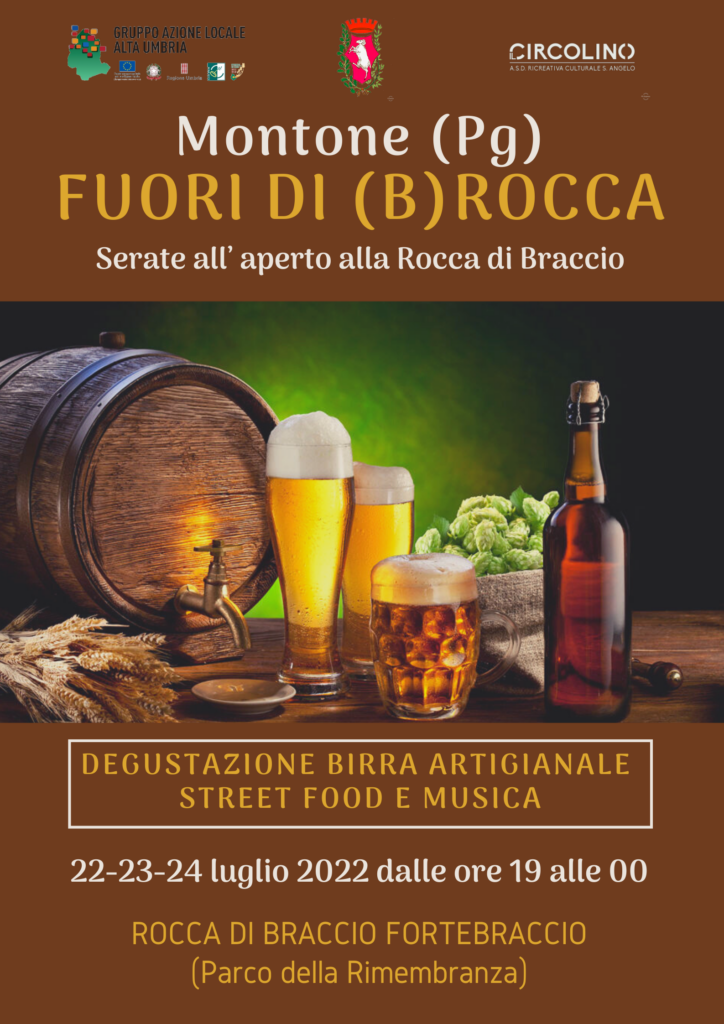 Degustazioni, street food e musica: a Montone, nella splendida cornice della Rocca di Braccio, venerdì 22, sabato 23 e domenica 24 luglio torna “Fuori di (B)Rocca”, il festival dedicato alle birre artigianali.da ufficio stampa Provincia di Perugia