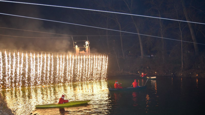 L’appuntamento richiama un grandissimo numero di bambini che attendono impazientemente l’arrivo dei Santa Claus. Appena scenderà l’oscurità i canoisti, travestiti da Babbo Natale, solcheranno le acque del fiume, per circa 800 metri a bordo delle loro canoe, in una cornice davvero scenografica con torce, candele e piccoli lumi.