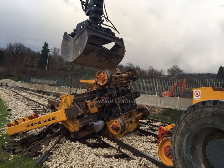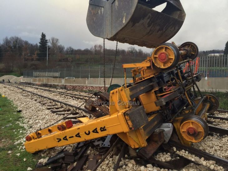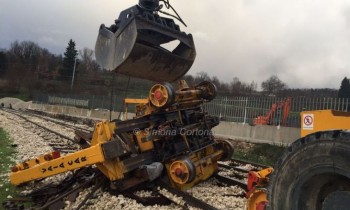 Un macchinario di oltre 50 quintali, binda idraulica varascambi, al lavoro sulla bretella che collega la ex Fcu alla zona industriale è uscito dai binari e ha travolto quattro operai. L’incidente è avvenuto intorno alle 14,30, a Pierantonio, frazione di Umbertide.