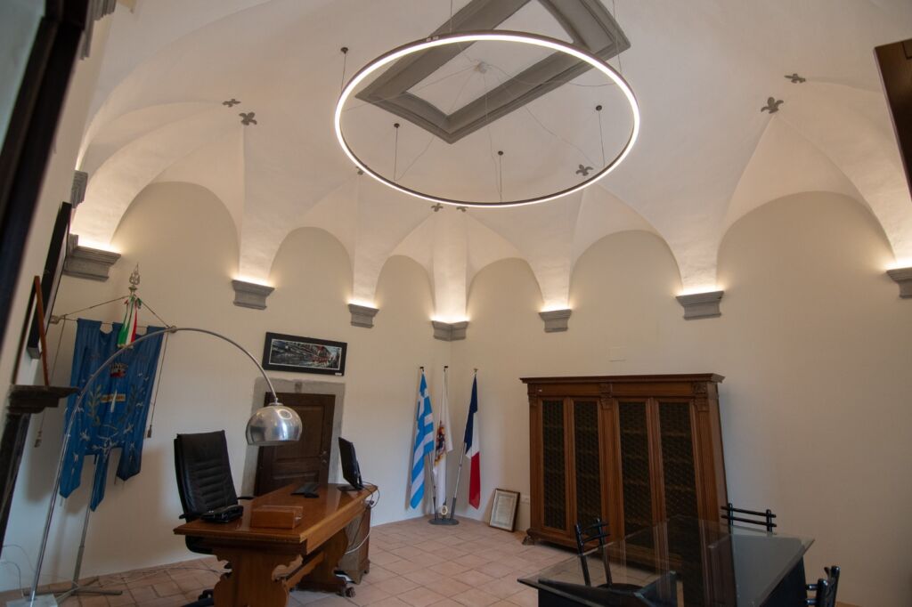 “Oggi inauguriamo il ritorno nella storica residenza dell’amministrazione comunale all’esito della conclusione dei lavori di miglioramento sismico, efficientamento energetico e abbattimento delle barriere architettoniche, durati 4 anni”. Così il sindaco di Pietralunga Mirko Ceci ha salutato la comunità e i rappresentanti delle istituzioni presenti questa mattina al taglio del nastro della ‘nuova’ Casa comunale. “Tale intervento – ha proseguito – rientra nell’ambito della programmazione dei lavori eseguiti dalle amministrazioni da me presiedute che ieri ha visto il miglioramento sismico ed efficientamento energetico del plesso scolastico, oggi vede concludere i lavori relativi al municipio e che domani culminerà, i lavori sono già in corso, con la messa in sicurezza e riqualificazione della Rocca longobarda e dell’ex convento di Sant’Agostino. Una sede che, oltre ad essere più sicura, è stata migliorata energeticamente e strumentalmente, per questo sicuramente più bella ed affascinante, che assieme alla chiesa di Pieve di Santa Maria, rappresenta e rappresenterà uno degli angoli più belli dell’Umbria.