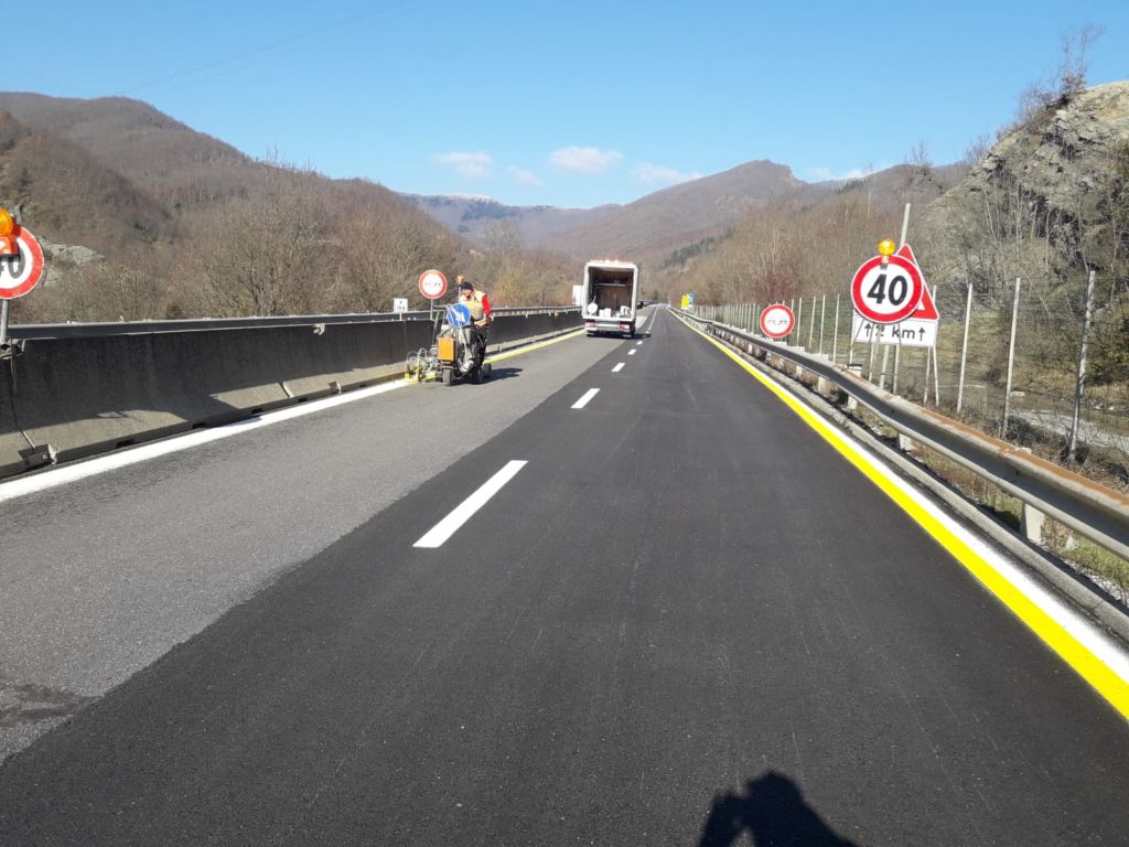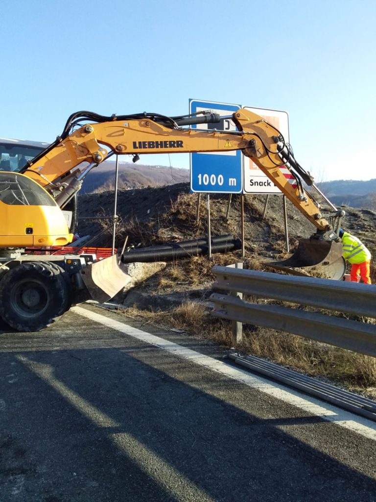 Oggi è in fase di ultimazione l’allestimento della segnaletica di restringimento della carreggiata da quattro a due corsie (segnaletica verticale, segnaletica orizzontale, delineatori flessibili) avviato da sabato stesso. Al contempo è in produzione la segnaletica di preavviso per la deviazione dei mezzi pesanti sui percorsi alternativi.