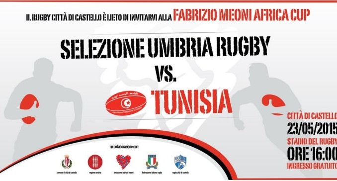 CITTA’ DI CASTELLO – Al via la prima edizione del Trofeo “Fabrizio Meoni Africa Cup”. La manifestazione, organizzata dal Rugby Città di Castello, si svolgerà il giorno 23 maggio 2015 alle ore 16 presso l’impianto sportivo della società situato in via Gino Bartali a Città di Castello, in provincia di Perugia. Scenderà in campo la selezione regionale dell’Umbria contro la nazionale della Tunisia. L’ingresso all’iniziativa – che ha il patrocinio della Regione Umbria, del Comune di Città di Castello, della Federazione Italiana Rugby e della Fondazione Fabrizio Meoni – è gratuito.