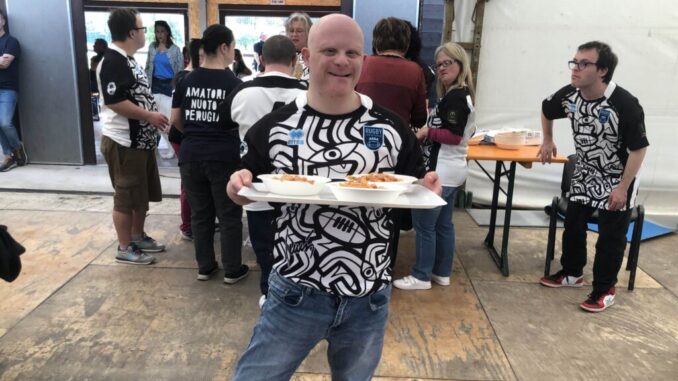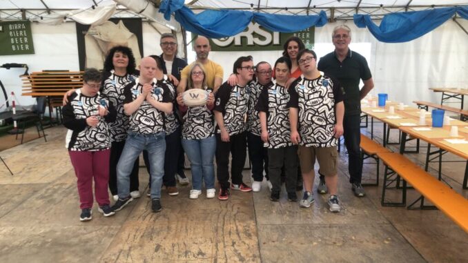 Rugby solidale, la conquista dei play off ed il sogno della serie B si gioca in campo ma anche nel terzo tempo grazie anche a ragazzi speciali. Sono loro i “campioni” del fair play e della solidarietà, Matteo, Chiara, Danilo, Pamela, Fabio, Giorgio, Lisa e Alessandro, alcuni degli straordinari rappresentanti dell’ AIPD (Associazione Italiana Persone Down ets/aps sezione di Perugia gruppo “Stefano Bianconi” (Città di Castello_Sangiustino_ Umbertide) protagonisti anche ieri pomeriggio, presso l’impianto di rugby in via della Barca in occasione dell’ultimo match della stagione regolare del campionato di serie C con gli Amatori Ascoli, di un bellissimo gesto di altruismo che travalica lo sport.
