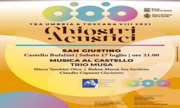 Il secondo appuntamento è fissato per il 17 luglio, alle 21 nel Cortile del Castello Bufalini, dove avrà luogo la serata Sangiustinese di ‘Chiostri Acustici tra Umbria e Toscana’. Questa pregevole iniziativa, giunta alla ottava edizione, ideata e curata da Catia Cecchetti, Direttore del Museo Diocesano, è, oltre che un appuntamento atteso, un momento importante in quanto permette ai vari Comuni della Vallata, sia Umbra che Toscana, di poter entrare in sinergia nella promozione degli spazi più suggestivi dei vari territori.