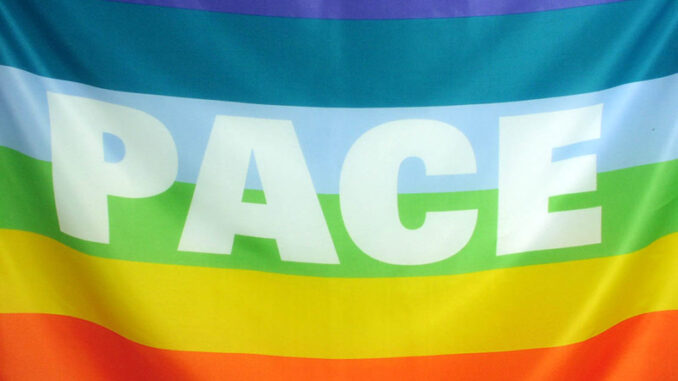 San Giustino chiede e crede nella pace. Da oggi la Casa Comunale sarà colorata con i colori della pace e una bandiera sarà appesa sul balcone della facciata. Chiediamo a tutti i nostri concittadini che credono nei valori della fratellanza e della libertà fra i popoli di fare altrettanto, esponendo dalle finestre delle proprie abitazioni una bandiera della pace”.