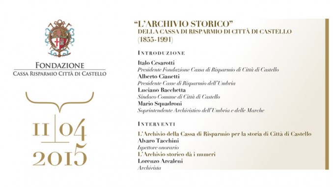L’iniziativa “L’Archivio Storico della Cassa di Risparmio di Città di Castello (1855/1991)” si terrà sabato 11 aprile 2015 a partire dalle ore 10.30 presso Palazzo Vitelli a Sant’Egidio – Sala delle Statue (piano terra). Dopo […]