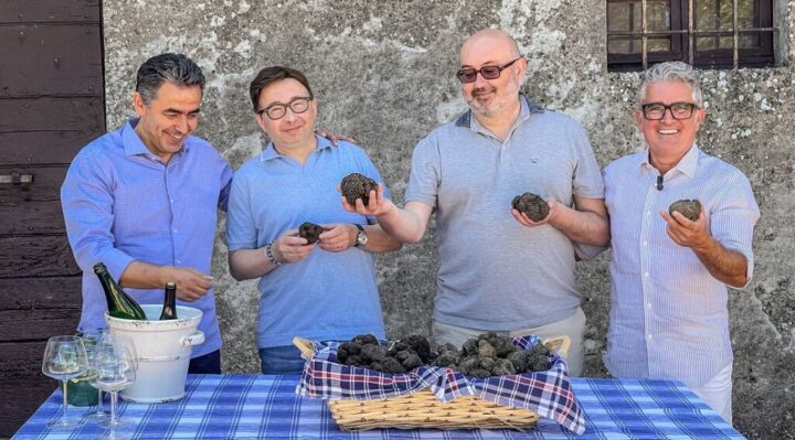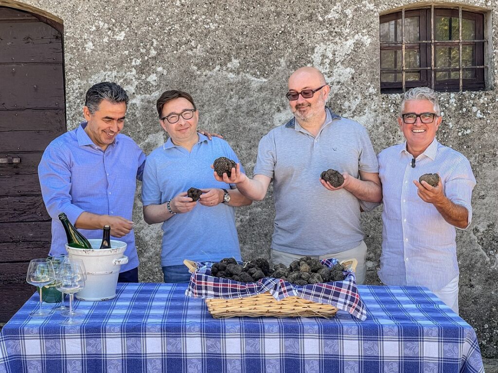 “È davvero straordinario il tartufo nero estivo per qualità, pezzatura e profumo, e si abbina al meglio a primi piatti e antipasti”, ha precisato Giuliano Martinelli, noto imprenditore del settore ed esperto come pochi di tartufi di ogni stagione, affiancato dalla inseparabile cagnolina Lola, capace di scovare le pepite della natura dei boschi. Ecco il menù che è stato servito per questo unico e originale pranzo al ‘confine’, una straordinaria e originale iniziativa promozionale dei territori dell’appennino umbro-marchigiano.