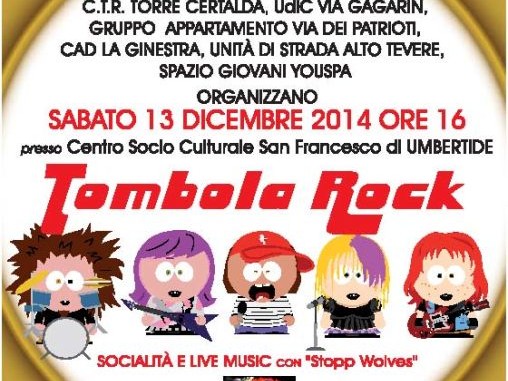 Sabato 13 dicembre 2014 presso il  Centro Socio Culturale San Francesco di Umbertide  torna la “Tombola Rock”. A partire dalle ore 16 il pomeriggio sarà dedicato alla musica insieme al gruppo “Stoop Wolves”, alla fortuna e al divertimento con numerosi giri di tombola ed infine si concluderà con una gustosa AperiCena offerta dalla Cooperativa di tipo B Cassiopea. Giunta alla sua sesta edizione,  la “tombolata” è organizzata con il patrocinio del Comune di Umbertide, dalla Comunità Terapeutica Torre Certalda, dall’Unità di Convivenza Via Gagarin, strutture della Cooperativa Sociale A.S.A.D.,  dal Gruppo Appartamento Via dei Patrioti, dal CAD La Ginestra,  strutture del CSM Alto Tevere , USLUmbria 1, da servizio Unità di Strada Alto Tevere  del Dipartimento Dipendenze USLUmbria 1,  dallo Spazio Giovani Youspa del Comune di Umbertide,  dall’Associazione Sportiva “Peter Pan” e dall’ Associazione per la Promozione della Salute Mentale “Le Fatiche di Ercole”. L’evento ha come obiettivo la promozione della salute mentale e la sensibilizzazione dei cittadini, in particolare delle fasce giovanili, verso le problematiche ad essa legate. Mai come in questo periodo storico, che ha portato e  porterà sicuramente ad  una ulteriore diminuzione della risorse dedicate alle problematiche socio-sanitarie, è evidente la necessità di un lavoro di rete nell’approcciare tali tematiche. L’opera di collaborazione con il territorio diventa perciò fondamentale, sia perchè aiuta la prosecuzione dei progetti, offrendo  una rete di risorse, necessaria a dare molteplici risposte ai complicati percorsi di che vive un disagio sociale, sia perché combatte l’esclusione sociale e aiuta a far riacquistare i diritti e i doveri  di cittadinanza a tutte quelle  persone che vivono quotidianamente la malattia o il disagio.