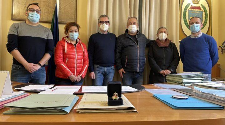 [su_panel background=”#e7e8ec” color=”#000000″ border=”3px solid #000000″ shadow=”4px 5px 6px #dbdbd9″ target=”blank”]“Vedere al dito di questa donna così forte ed emancipata, paladina dei diritti umani, questo piccolo oggetto creato e realizzato nel nostro Comune il giorno del giuramento del presidente Biden in Campidoglio – continua il primo cittadino -, mi ha profondamente inorgoglito e per questo, ho voluto ringraziare personalmente e a nome di tutta l’Amministrazione, l’amico Pietro e la sua compagna Myriam ricevendoli presso la sede comunale.[/su_panel]In questo momento difficile per molti artigiani, dovuto sia alla generale crisi economica che alla pandemia, queste notizie infondono sicuramente un po’ di ottimismo e speranza”.