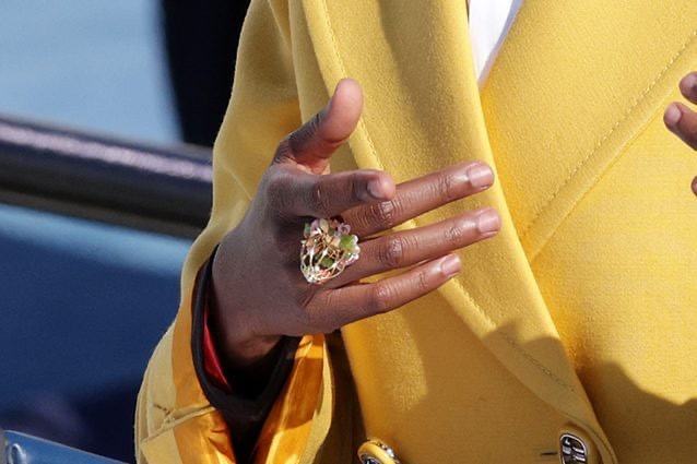 L’anello, indossato magicamente dalla poetessa Amanda Gorman, lancia un messaggio preciso e non lascia nulla al caso; l’artista, seppur giovane, è già icona ed attivista dei temi riferiti all’oppressione, al femminismo, al razzismo, all’emarginazione e alla diaspora africana.