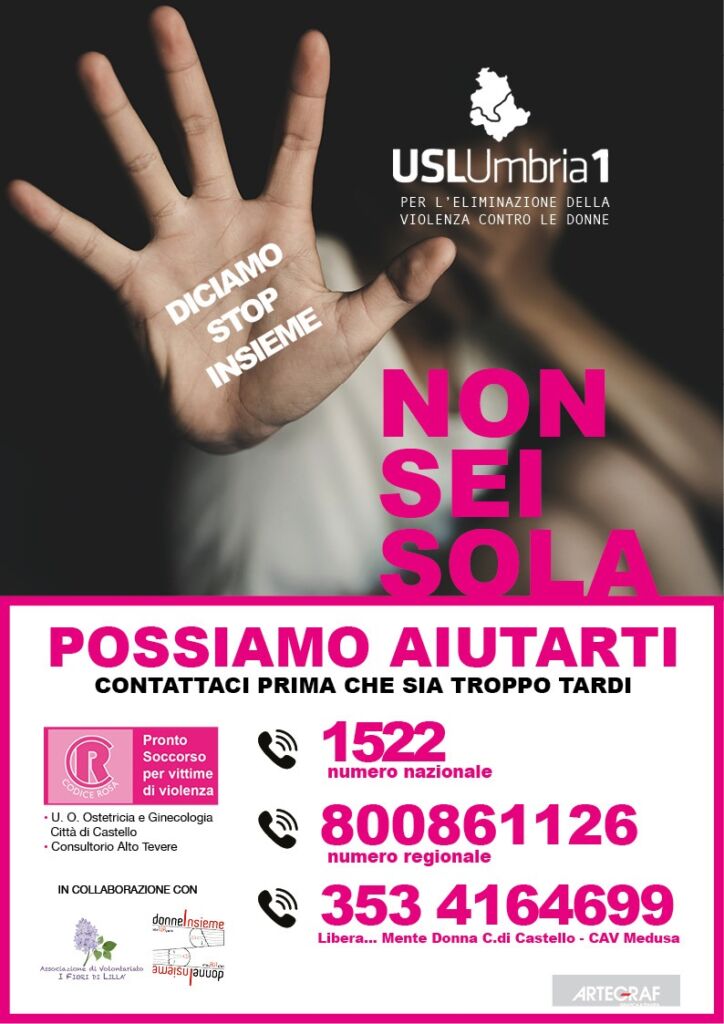 Domenica 28, dalle ore 9 alle 13, in piazza Matteotti, presso le Logge Bufalini, è in programma una “Giornata contro la violenza sulle donne”. Sarà presente un banchetto presidiato dal personale del reparto di Ostetricia e Ginecologia dell’ospedale tifernate e del Consultorio Alto Tevere in collaborazione con il personale del Pronto Soccorso di Città di Castello e con alcune associazioni di volontariato (I fiori di Lillà, Cav Medusa, Libera… Mente Donna di Città di Castello e Donne Insieme di Umbertide) dove saranno distribuiti volantini informativi e mascherine rosse. La mattinata prevede i saluti dei dottor Pasqui e Torrioli e di alcuni presidenti delle associazioni coinvolte.