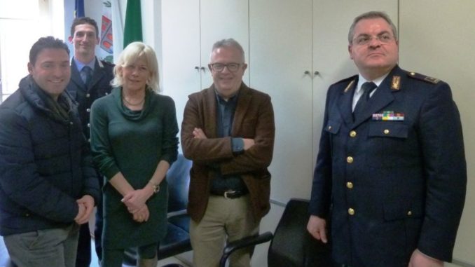 A riceverla, il sindaco Marco Locchi, l’assessore alla polizia municipale Paolo Leonardi e il comandante della polizia municipale Gabriele Tacchia